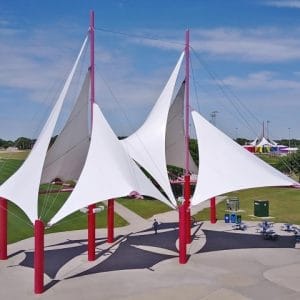 – Mái che công viên bằng cấu trúc bạt căng có Giá trị tạo hình lớn ,Có thể tạo ra các hình học như mong muốn mà không làm ảnh hưởng đến chất lượng của bạt