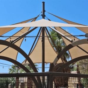 Mái che bạt căng cánh buồm được sản xuất từ các loại vải chuyên dụng có độ bền kéo cao như HPDE, PVDF, PTFE. Với đặc tính co giãn, chống tia UV, ngăn tia cực tím và chịu được mọi tác động hóa học trong môi trường tự nhiên thì các loại vải của chúng tôi là rất bền khi sử dụng ngoài trời, độ bền trên 10 năm.