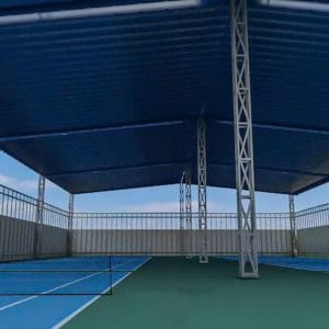 - Mái che được tùy chỉnh theo diện tích sân Pickleball tiêu chuẩn (13.41m x 6.10m cho một sân đơn).